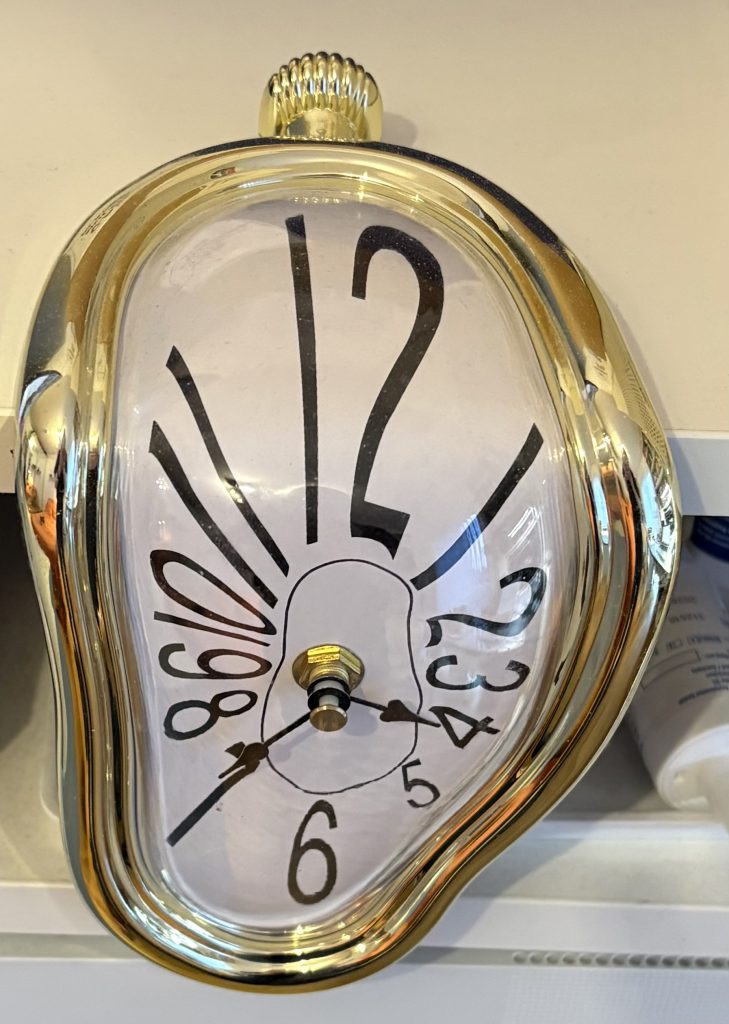 Besonders stolz war ich darauf, dass es mir gelungen ist, eine Uhr nach Dalís Vorbild einzubauen. Als konkrete Vorlage dient eine „echte“ nachgebaute Uhr, die immer noch in meinem Arbeitszimmer tickt: